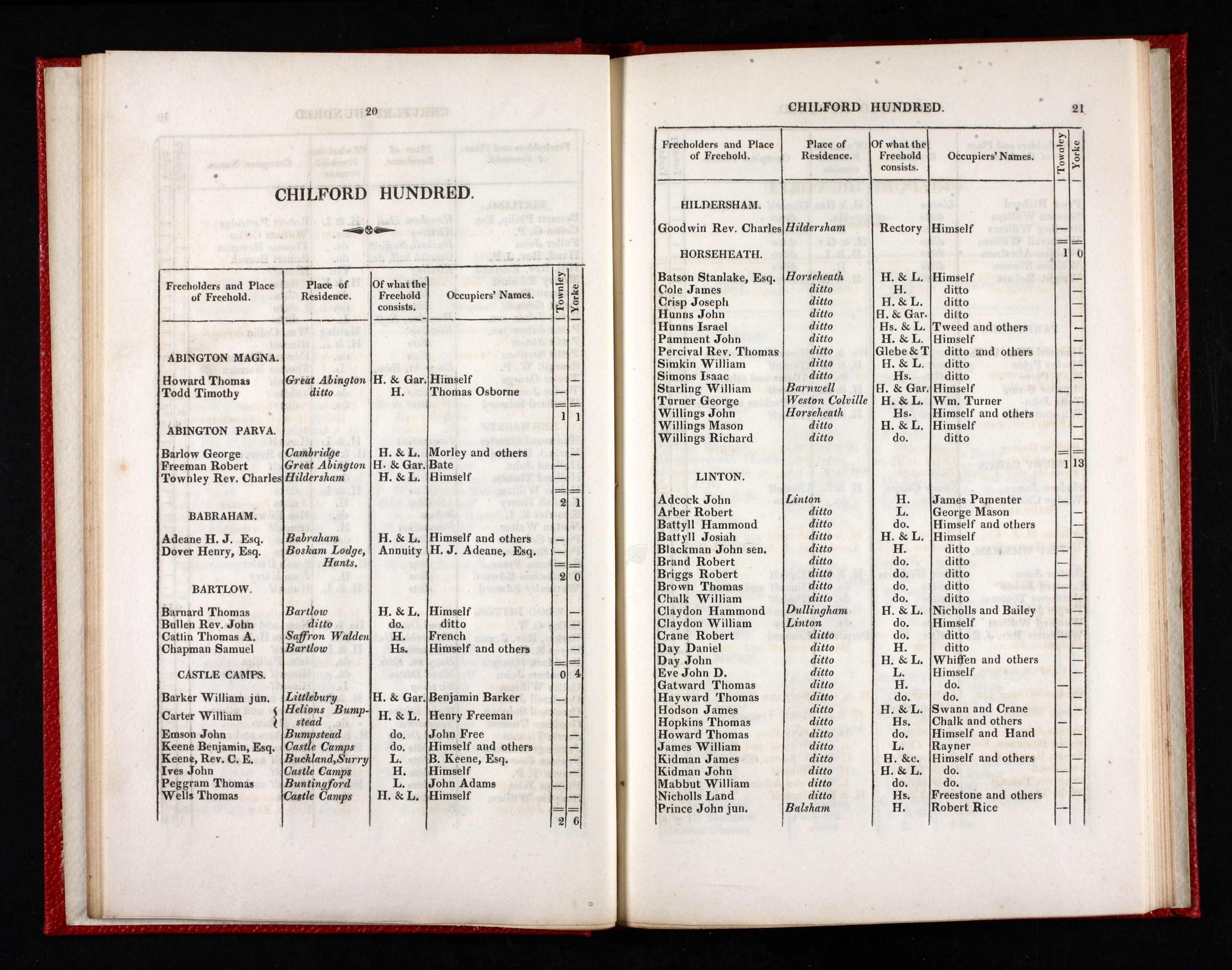 William Barker (jun) was a Freeholder of a H & Gar. (House and garden) in Castle Camps and thus eligible to vote. The occupier of that Freehold was a certain Benjamin Barker (his younger brother). The place of residence of the Freeholder, was given as Littlebury.